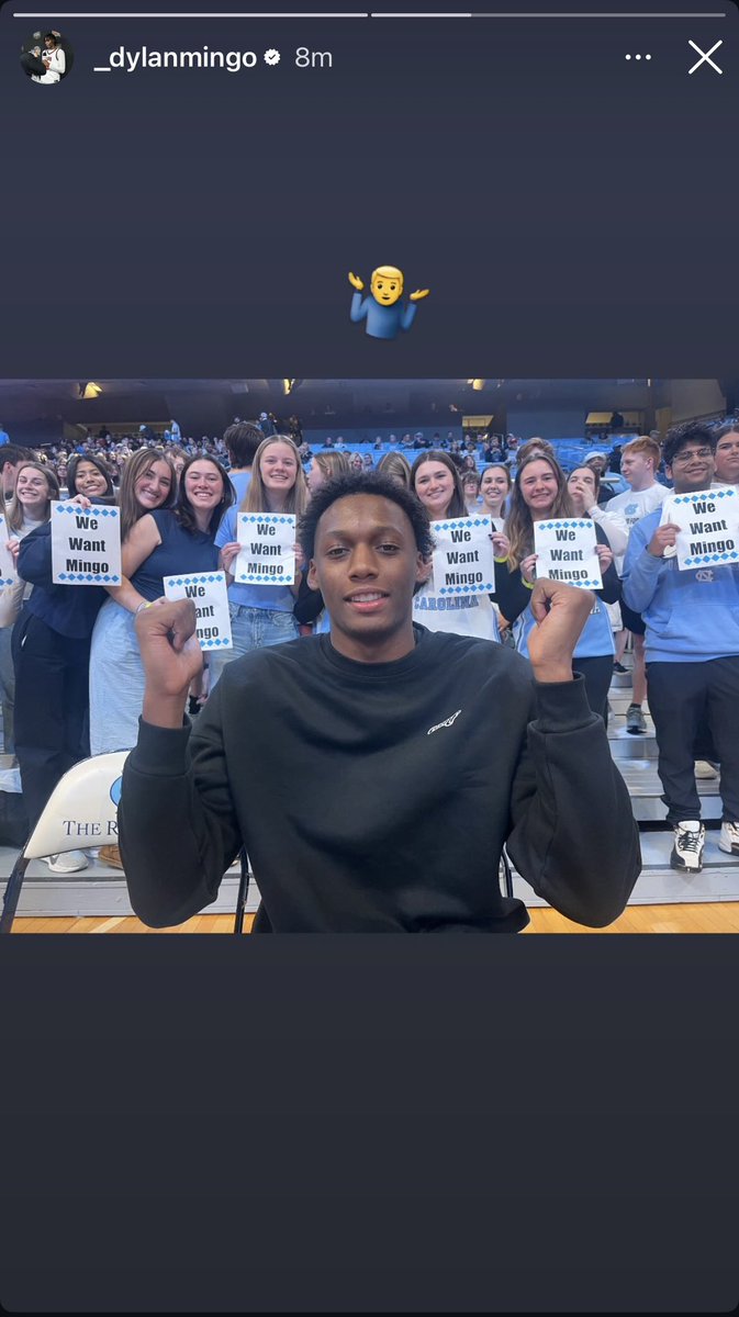 Before Friday night’s game, Mingo received the love from the student section, which showed up well before tip-off. It appears that Mingo loved the signs, posting the below photo on his Instagram story of him with some fans who were part of the recruitment process.