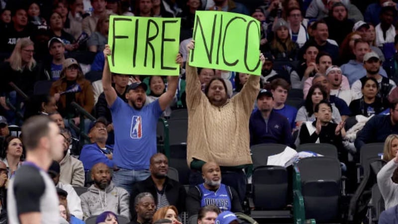 As the Mavericks hosted the Sacramento Kings Monday night, fans at the American Airlines Center were holding signs that read “fire Nico.”