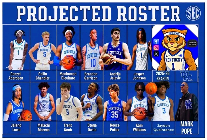 As the countdown to the 2025–26 college basketball season begins, the University of Kentucky has officially unveiled its projected roster, and it’s nothing short of electrifying. Under the leadership of Head Coach Mark Pope, the Wildcats appear poised to reassert their dominance in the SEC and on the national stage with a dynamic blend of returning talent, elite newcomers, and seasoned transfers.
